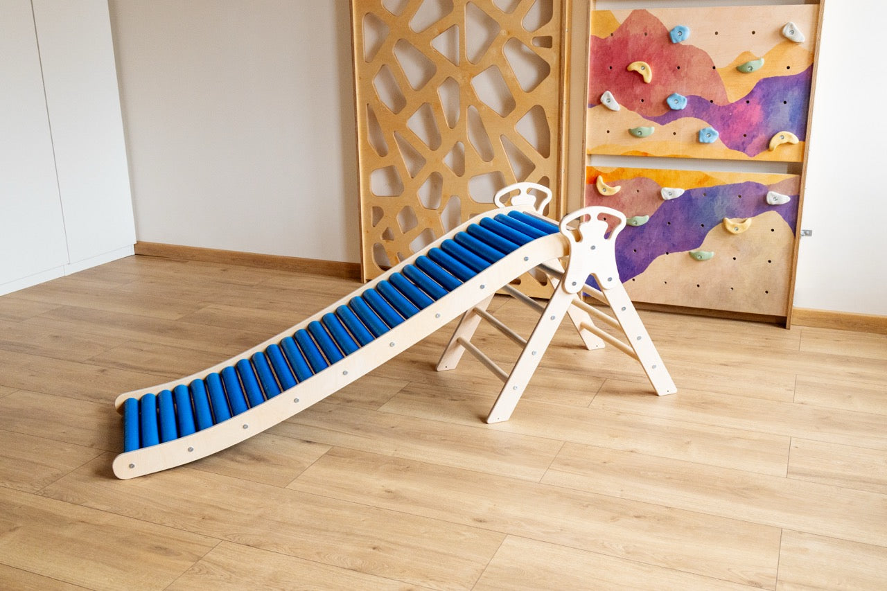 Klettern, Schaukeln, Rutschen und Höhlen bauen war schon immer interessanter als jedes Spielzeug. Weil man es im Alltag nicht regelmäßig auf den Spielplatz schafft, kann man sich mit unseren kompakten Klettergeräten einen Spielplatz einfach zu Hause aufbauen. Entdecke beispielsweise unsere Kletterbögen: Zum Klettern auf den Sprossen oder umgedreht zum Schaukeln und als Liegegelegenheit: Den Kindern sind beim Entdecken keine Grenzen gesetzt. Als Set kombiniert mit einem Kletterdreieck, können Brücken und Höhlen entstehen, mit einer Sprossenwand geht es hoch hinauf. Für maximalen Spaß sorgt unsere Rollenrutsche. Die weichen und robusten Rollen drehen sich beim Rutschen und erzeugen ein Erlebnis der Extraklasse!